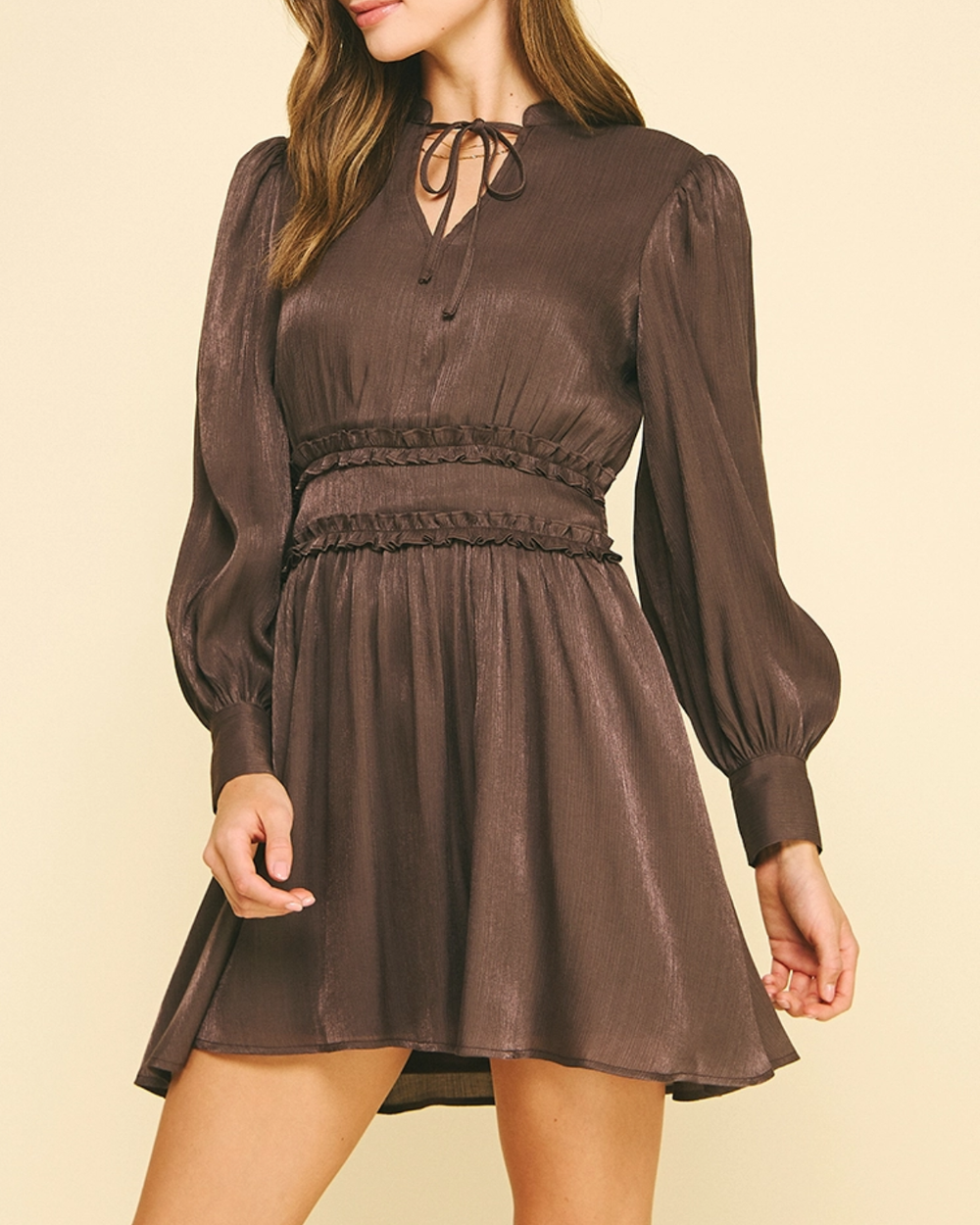 Twirl into the night in this espresso-hued mini dress that's all about the ruffles. Flirty layers add movement and charm, while the rich brown tone keeps things effortlessly chic.
