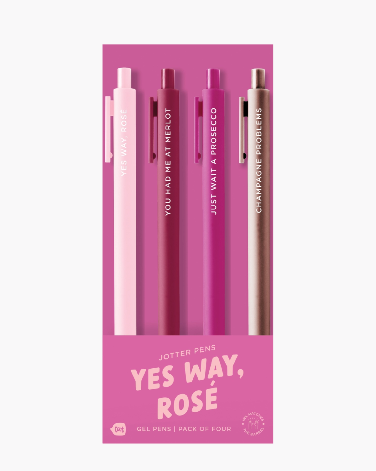This TikTok-famous 4-pack features playful sayings in stunning rose tones. Soft-touch barrels and matching fine-point gel ink make writing a joy. A bestselling set that's as fun to use as it is to flaunt.