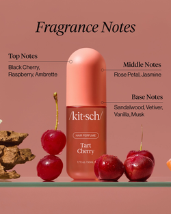 Tart Cherry Hair Perfume brings the carefree vibes of a sunny picnic day straight to your locks. This fruity gourmand blend of juicy cherry, playful florals, and vanilla is your go-to for instant freshness. Powered by patented odor-eliminating technology that neutralizes smells at the source, it's the perfect refresh between washes. Mix, match, or wear solo—spritz on hair, body, or pillowcase for pure joy.