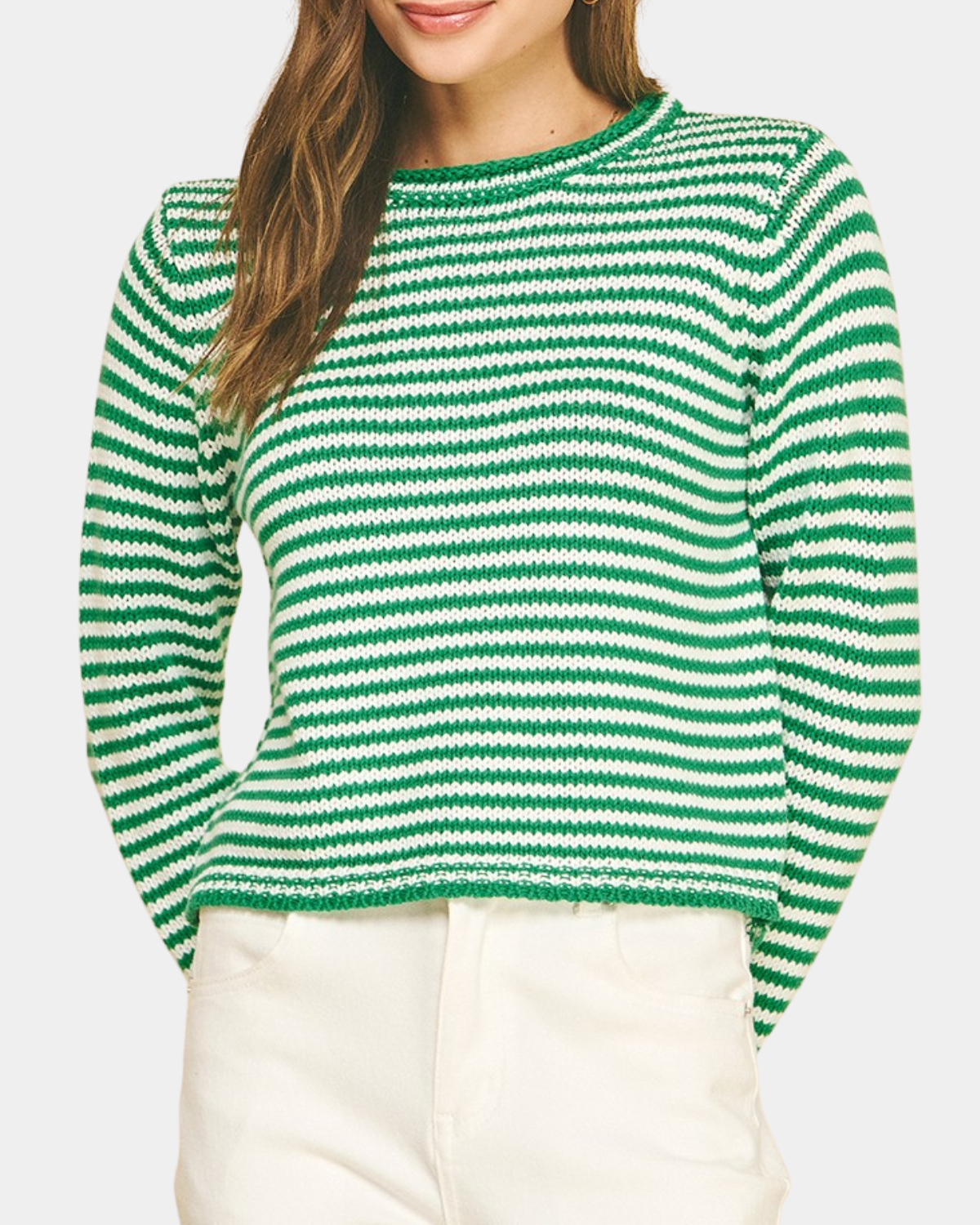 Cozy up in stripes! This crew neck sweater brings effortless style with its classic striped pattern and comfortable fit. Perfect for layering or wearing solo, it's your go-to piece for casual days and relaxed weekends.