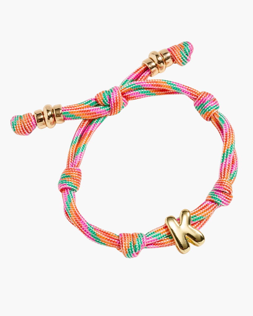 Playful pops of color meet polished gold in this fun, personalized rope bracelet. Woven in vibrant pink, orange, and green with a gleaming initial charm, it's the perfect everyday accessory that feels both bold and refined.