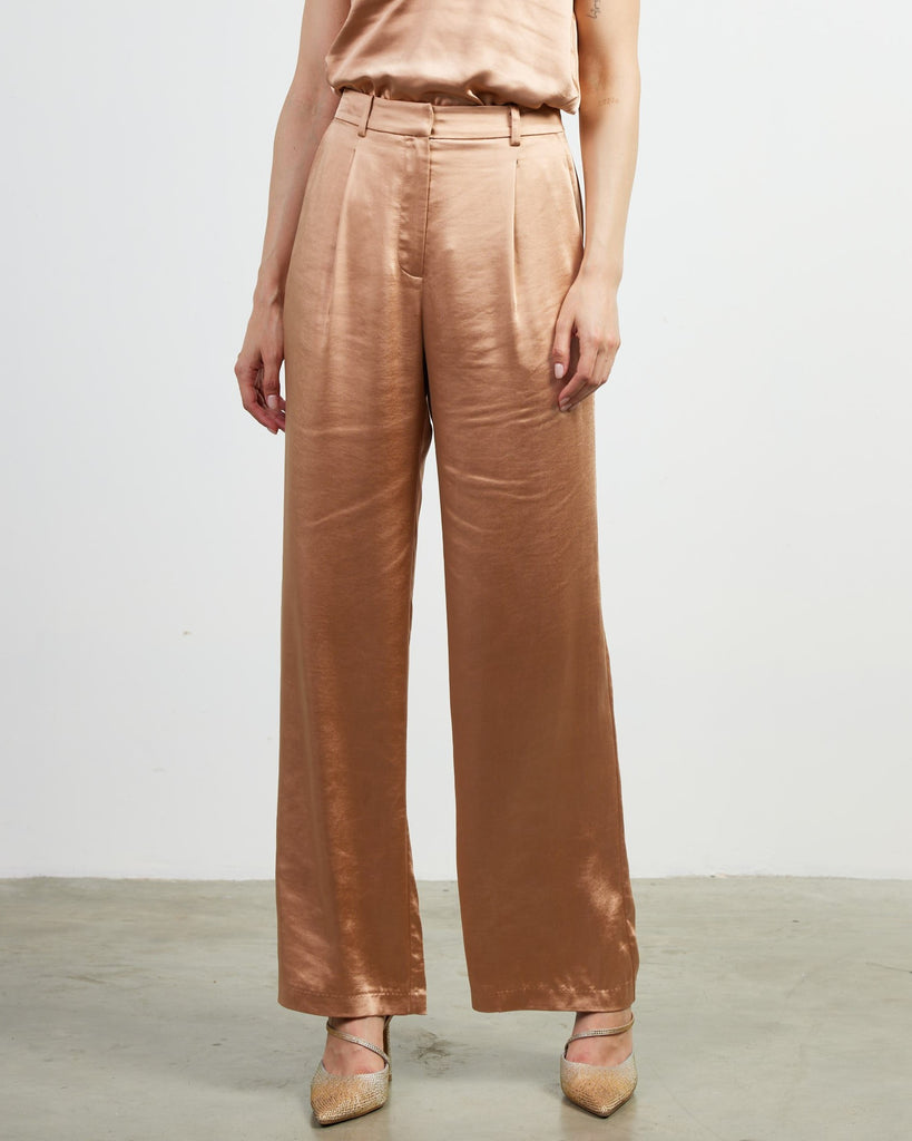 Introducing your new go-to pants for a night out, the Satin Trousers in Almond. These sleek and stylish trousers are made with luxurious satin fabric, providing a silky smooth feel while also giving off a subtle sheen. Perfect for any occasion, these trousers are sure to elevate your wardrobe and make a statement wherever you go.