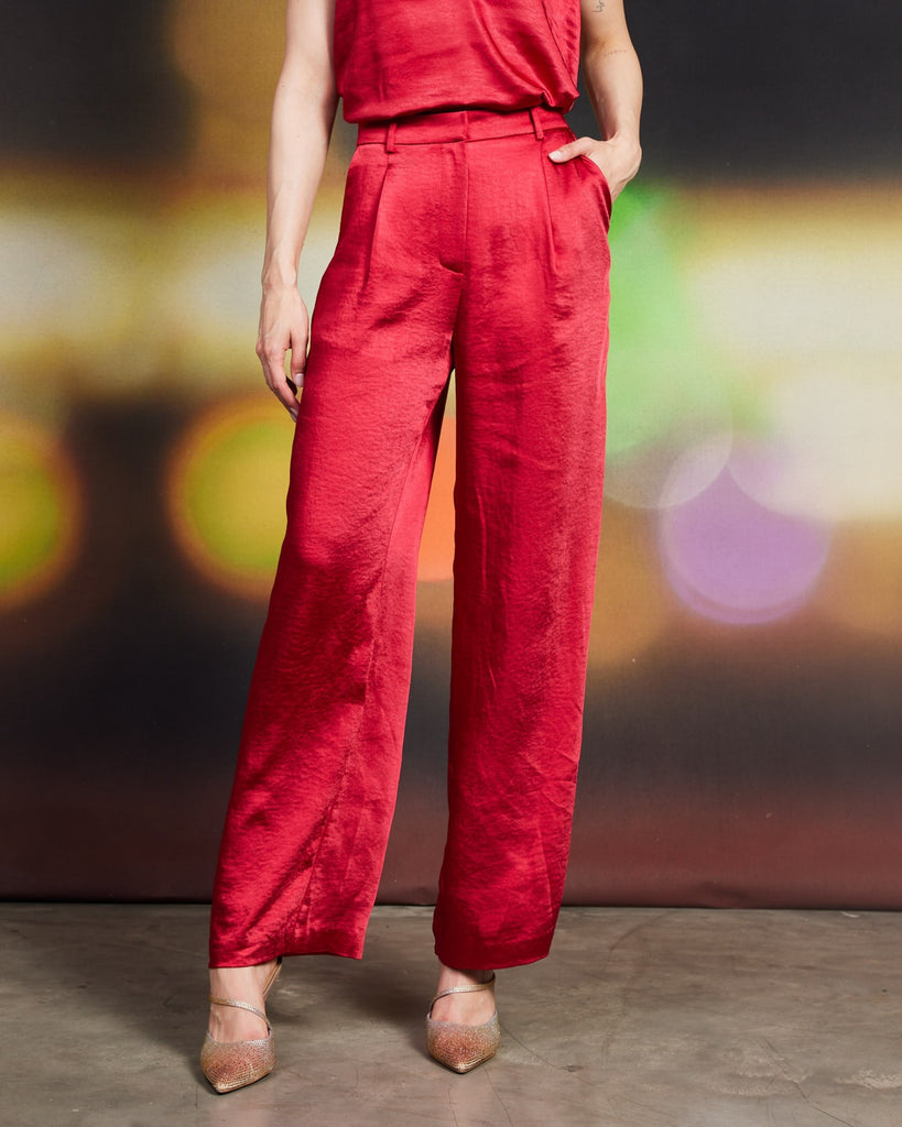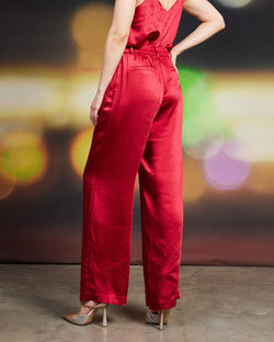 Introducing our Satin Trousers in Red - the perfect blend of elegance and comfort! Made from luxurious satin fabric, these trousers add a touch of glamour to any outfit. The vibrant red color is sure to make a statement, while the soft material ensures all-day wearability. Get ready to turn heads and feel fabulous in our Satin Trousers!