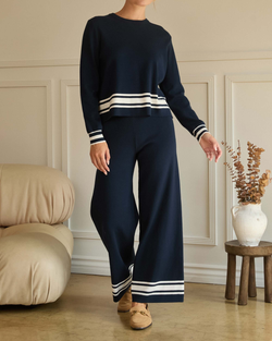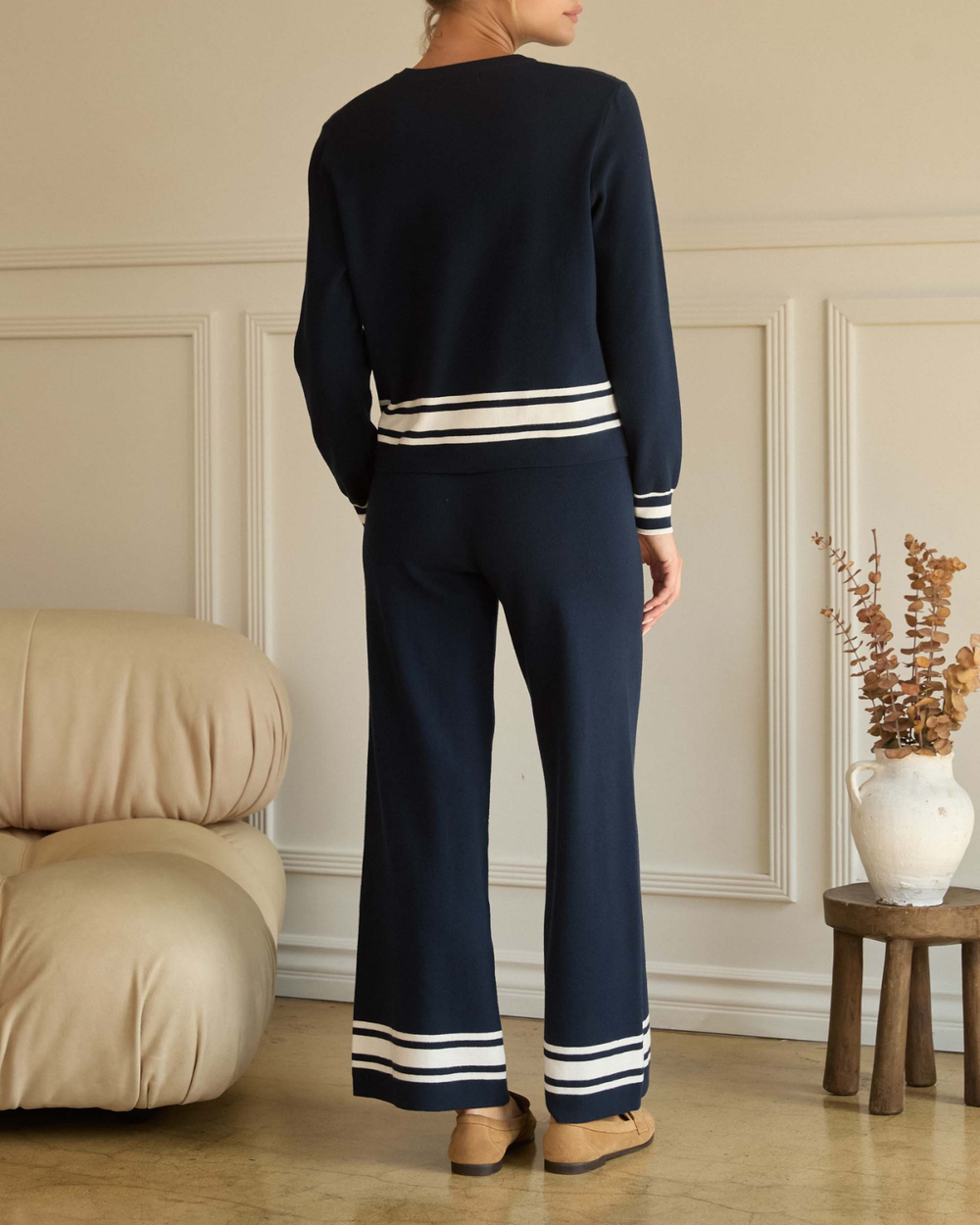 These Striped Hem Knit Pants are your new go-to for effortless style. Soft, stretchy fabric keeps you comfy all day, while that eye-catching striped hem adds a playful sporty edge. The elastic waistband means zero fuss—perfect for lounging, errands, or casual hangouts. Pair with a tee and you're done.