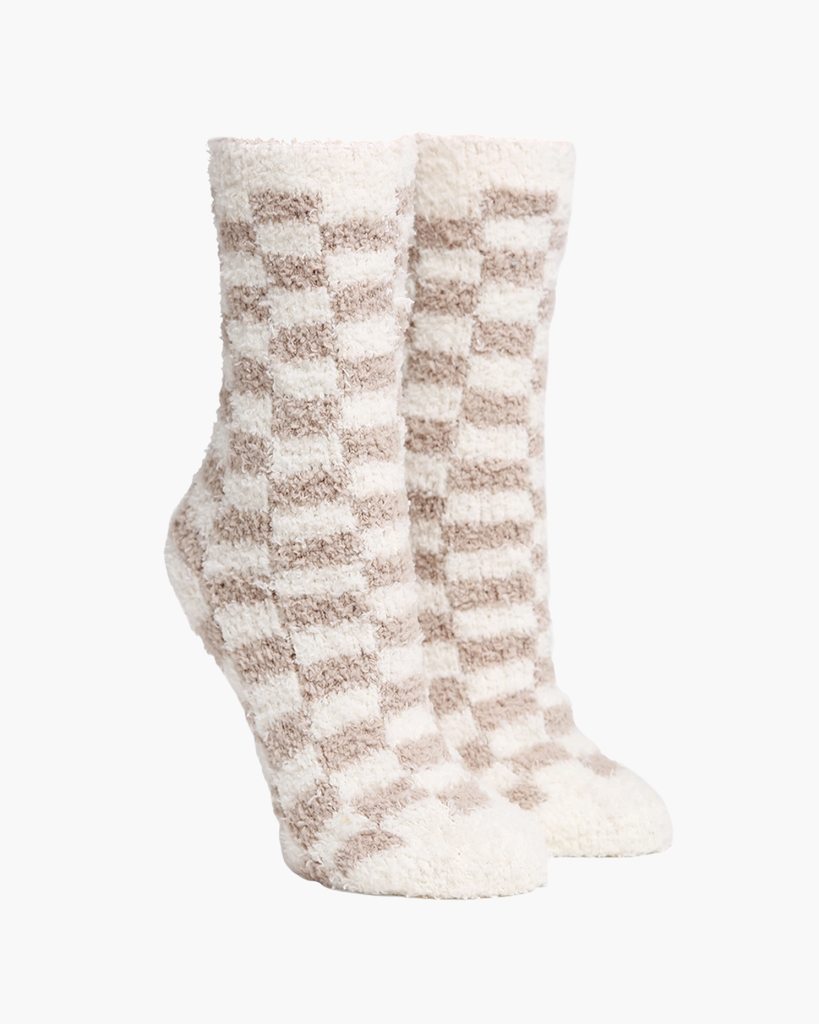These ultra-soft grey checkered socks are your winter go-to for cozy feet and effortless style. Mini crew cut, fuzzy comfort, and a fun pattern that makes staying warm actually enjoyable.