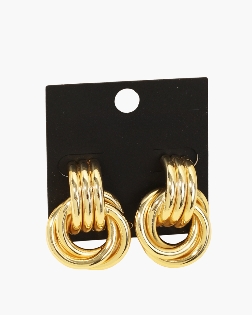 These gold interlinked hoop drop earrings showcase a distinctive geometric design that captures light beautifully. Perfect for adding polished elegance to your everyday style or special occasions, they're the versatile accessory every sophisticated wardrobe deserves.