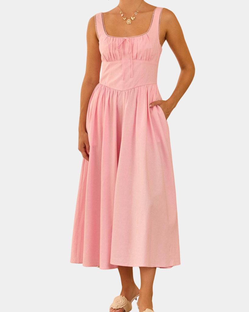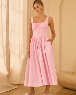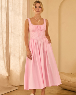 This strawberry milk midi features a chic square neckline and princess-waist seam that flatters every frame. Sleeveless and endlessly versatile, dress it down with sandals or up with heels—it's ready for whatever your day brings.