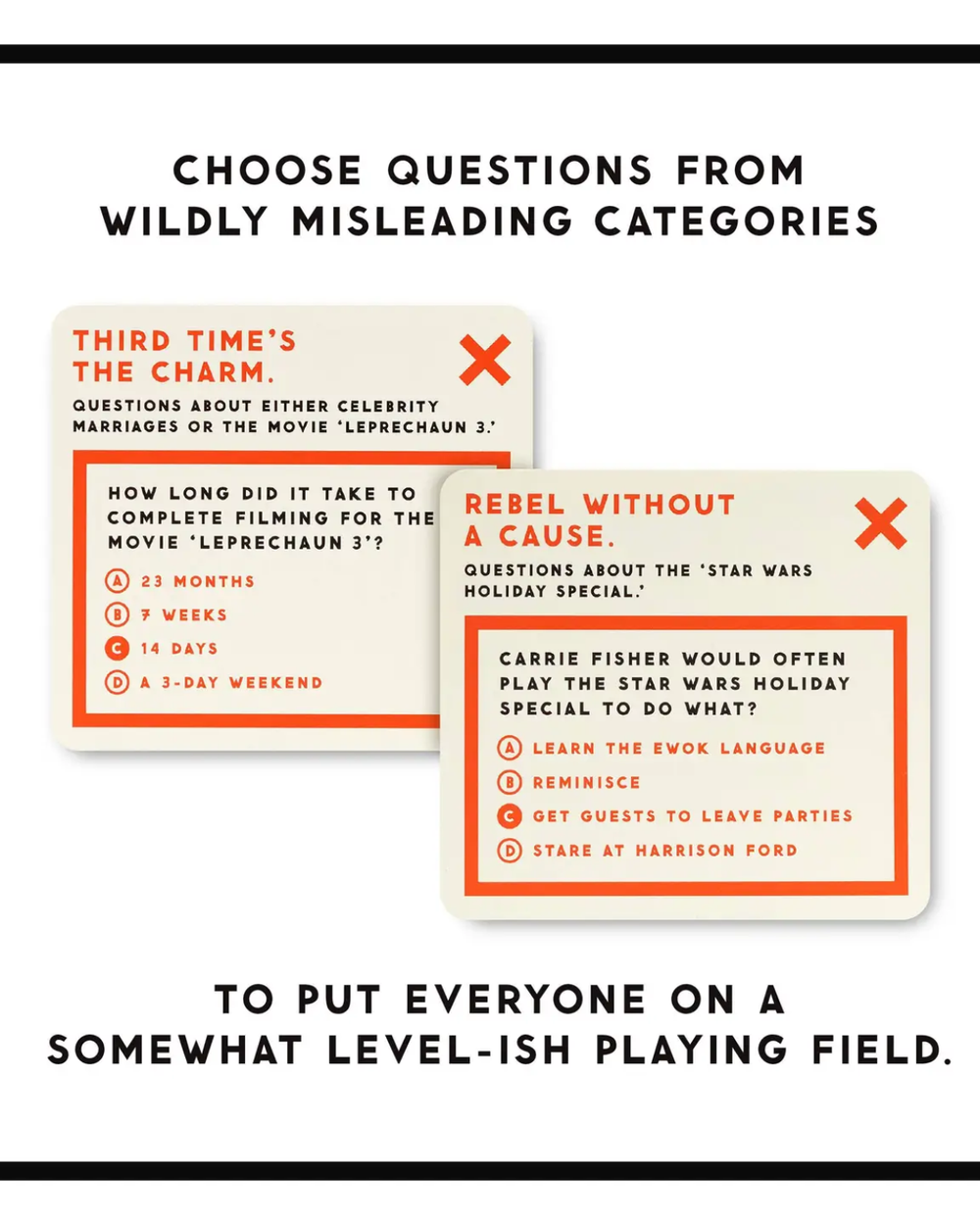 Forget boring trivia nights! This Brass Monkey game serves up delightfully useless facts wrapped in hilariously misleading categories. Watch your friends squirm as "Who's the Boss?" leads them down unexpected rabbit holes. Pure comedy, zero homework vibes.