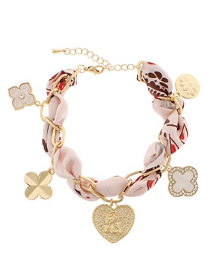 On trend and so chic, this scarf bracelet with multiple clover charms is a favorite for everyday wear.