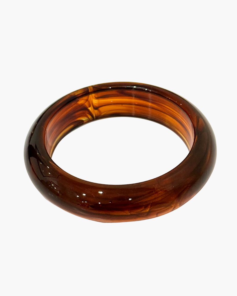 This marble bangle showcases tortoise-shell patterning in a sleek, minimalist design. The polished surface catches light beautifully, making it an ideal complement to both casual and formal wear.