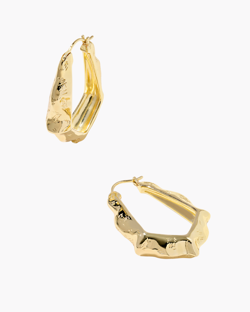 These Kendra Scott Adriana Hoop Earrings showcase a refined teardrop silhouette with scalloped detailing and hand-hammered silver construction. The textured finish and organic edge work create a sophisticated piece that balances understated elegance with distinctive character.