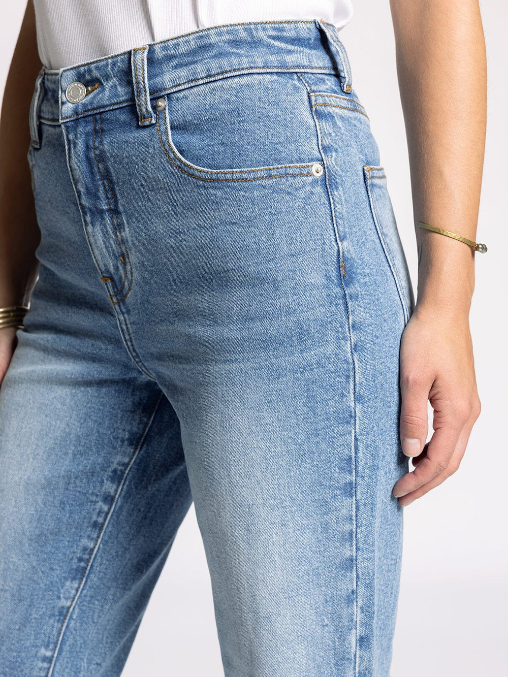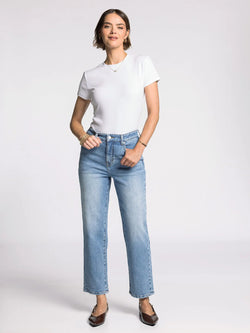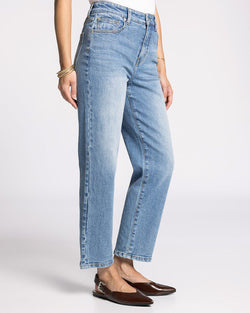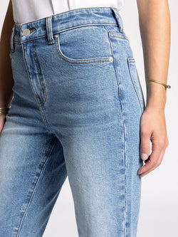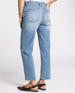 The Alex Mid-Rise Straight Leg Jeans in Vintage Sky deliver timeless sophistication with a flattering silhouette. This classic pair sits at the perfect mid-rise, offering comfort without compromise. Versatile enough to pair with everything from crisp white shirts to relaxed sweaters, these jeans embody understated sophistication.