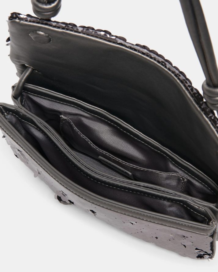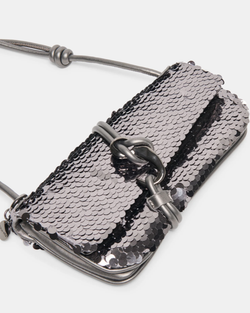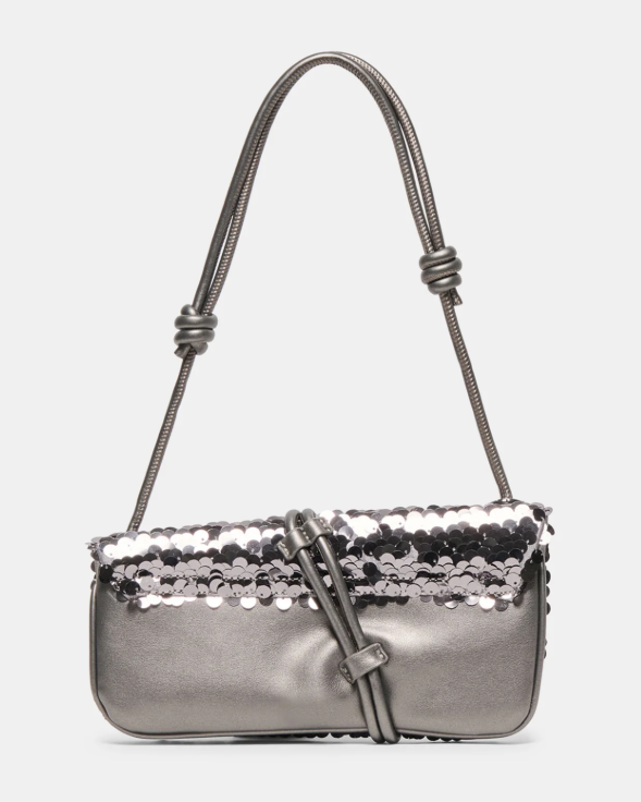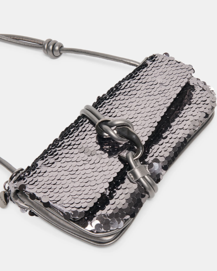 This refined baguette bag delivers understated sophistication with its signature metal hook clasp and knotted strap detail. The adjustable shoulder silhouette offers versatile styling for the discerning collector who appreciates quality craftsmanship and distinctive design elements.