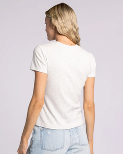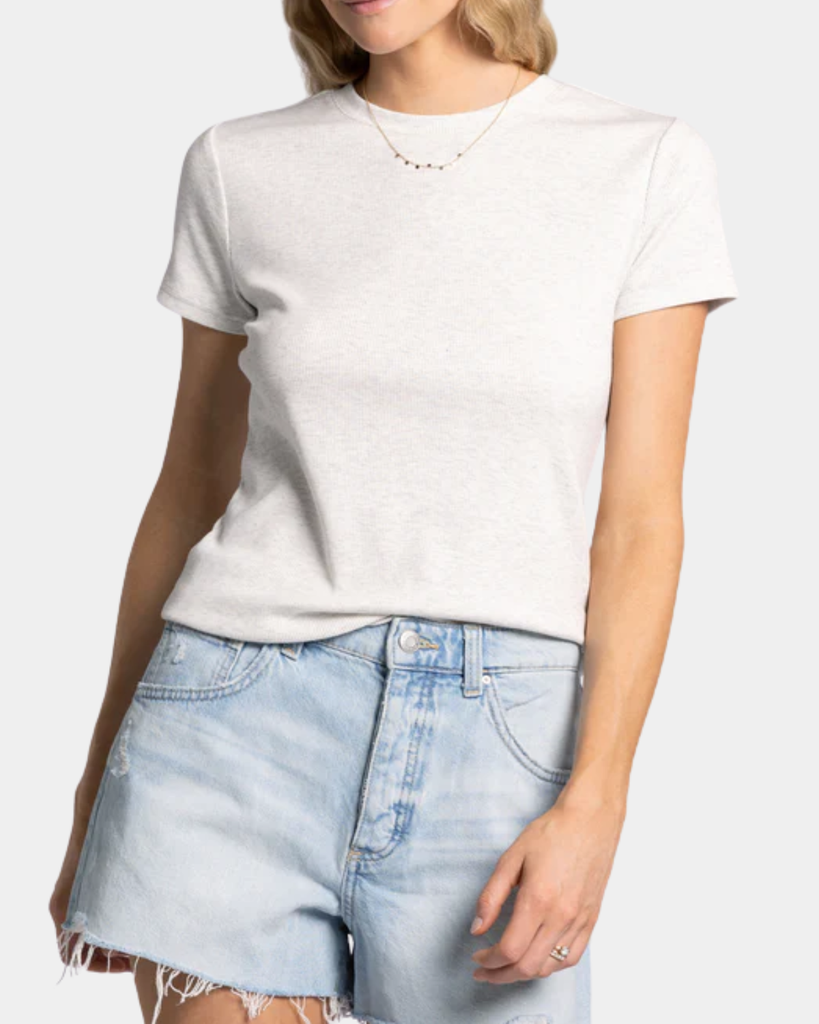 A refined essential. This white tee features a premium ribbed knit with a streamlined fit—designed for effortless versatility and lasting wear.