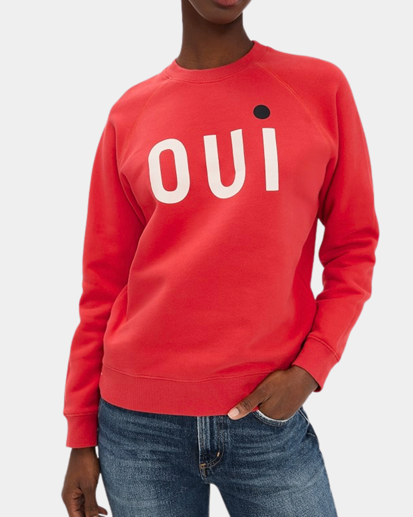 Say oui to this Clare V. stunner in bold super red and cream! Crafted from lightweight fleece-backed jersey with just the right amount of stretch, it's your new go-to for looking put-together while feeling totally at ease.