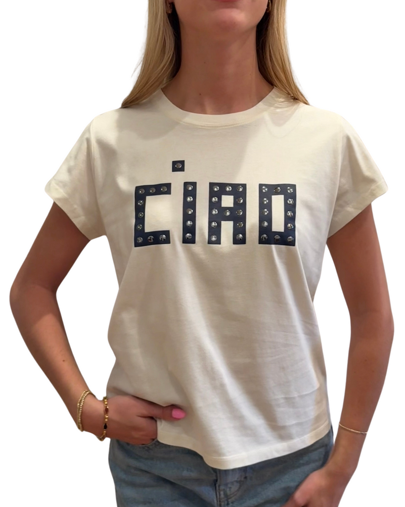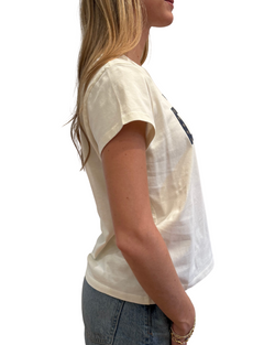 Add a splash of fun to your wardrobe with the Clare V. Classic Ciao Tee in Cream—where casual meets chic with a cheeky graphic twist. Perfect for saying hello in style anytime!