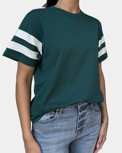 HomeTopsClare V. Original Varisty Tee - Deep Pine/Cream