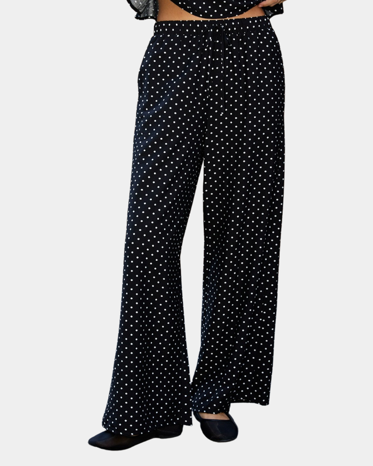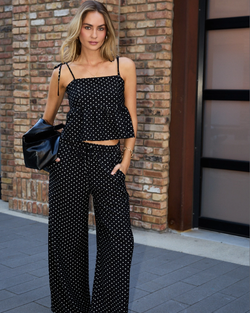 Step out in style with these fun high-waist wide-leg pants featuring a chic black and white dot design. Pair with the matching top for an instant go-to outfit that's equal parts fun and fabulous.