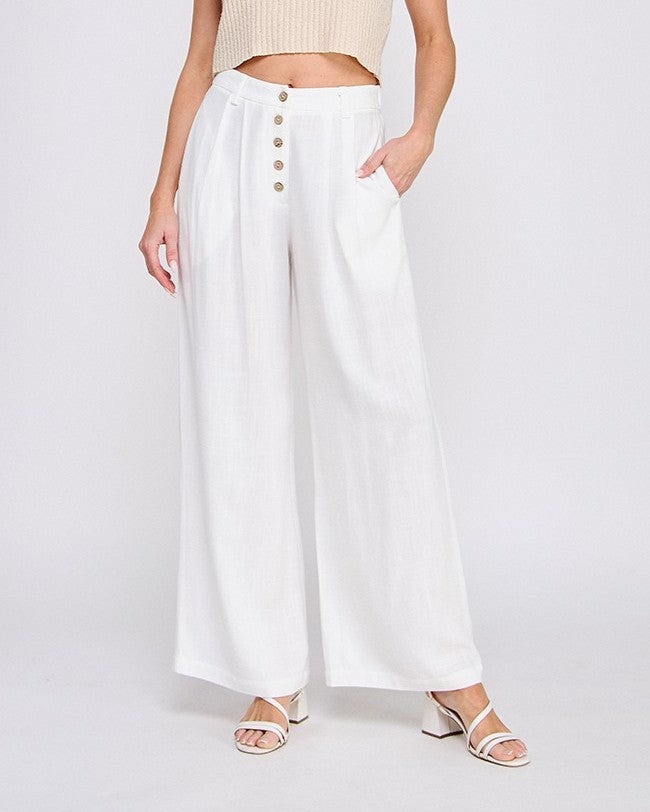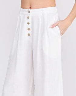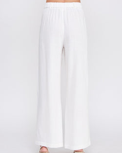 Elevate your style game with our Soft Linen High Waisted Palazzo Pants in Off White. The soft linen fabric hugs your waist for a flattering fit while the wide-legged silhouette adds a touch of drama to your look. Perfect for a casual day out or a night on the town.