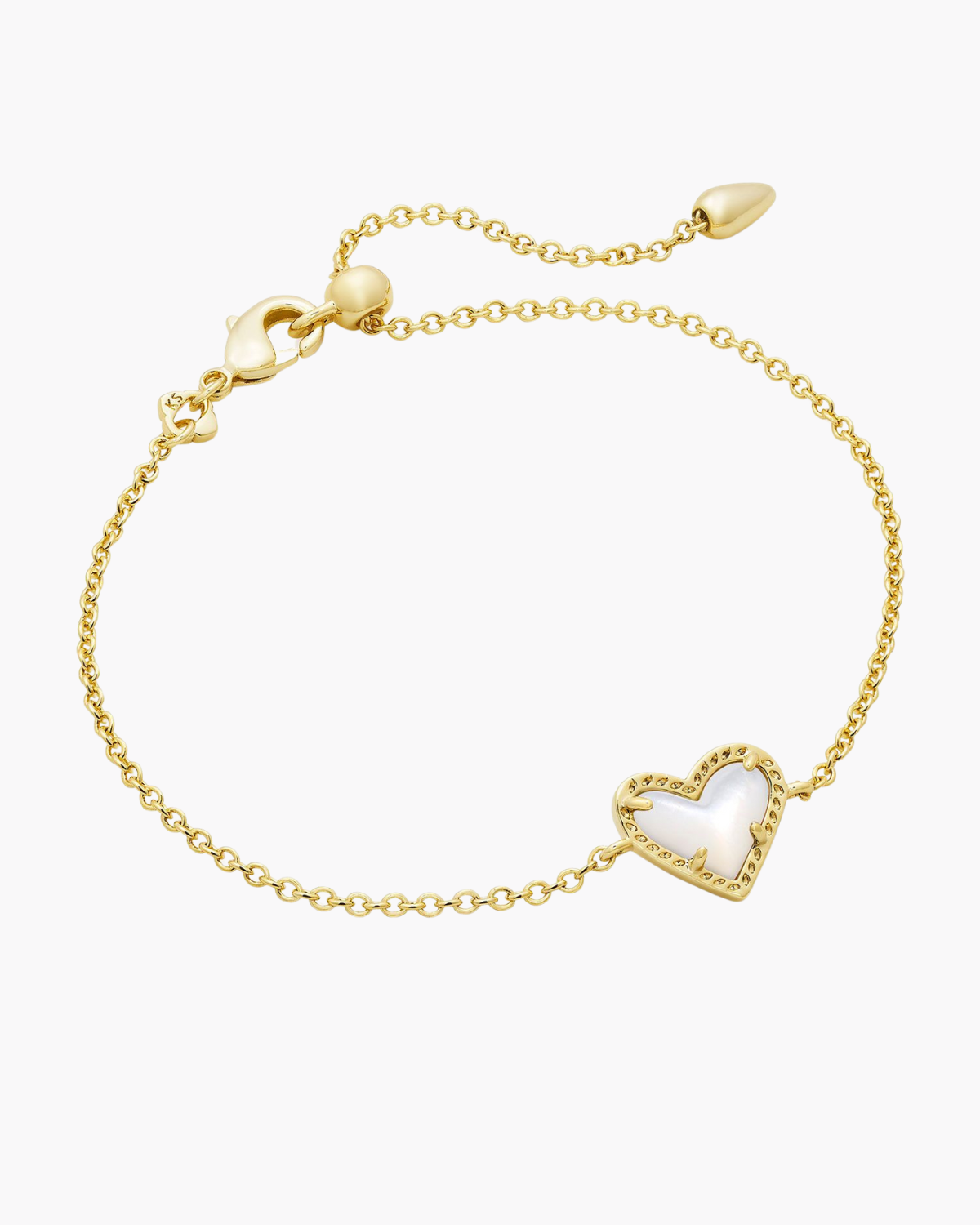 Showcase understated elegance with this delicate gold bracelet, featuring an ivory mother of pearl heart pendant in an asymmetrical design. Perfect worn alone or layered, the adjustable chain adapts to your personal style.