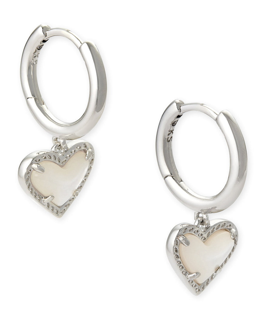 Hearts and huggies together - is there anything better? The Ari Heart Silver Huggie Earrings in Ivory Mother-of-Pearl adds that little something extra to your look with its playful asymmetrical design.
