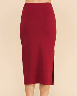 Unleash your inner sass with our Bodycon Knit Midi Skirt in Carmine Red. This vibrant piece hugs your curves in all the right places, creating a flattering silhouette. Perfect for any occasion, this skirt is sure to turn heads and make a statement wherever you go. (No more boring skirts, am I right?!)