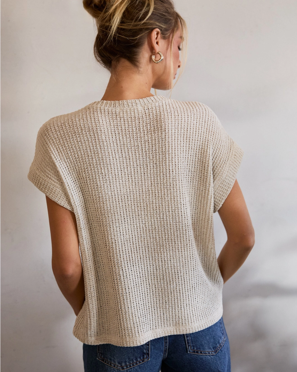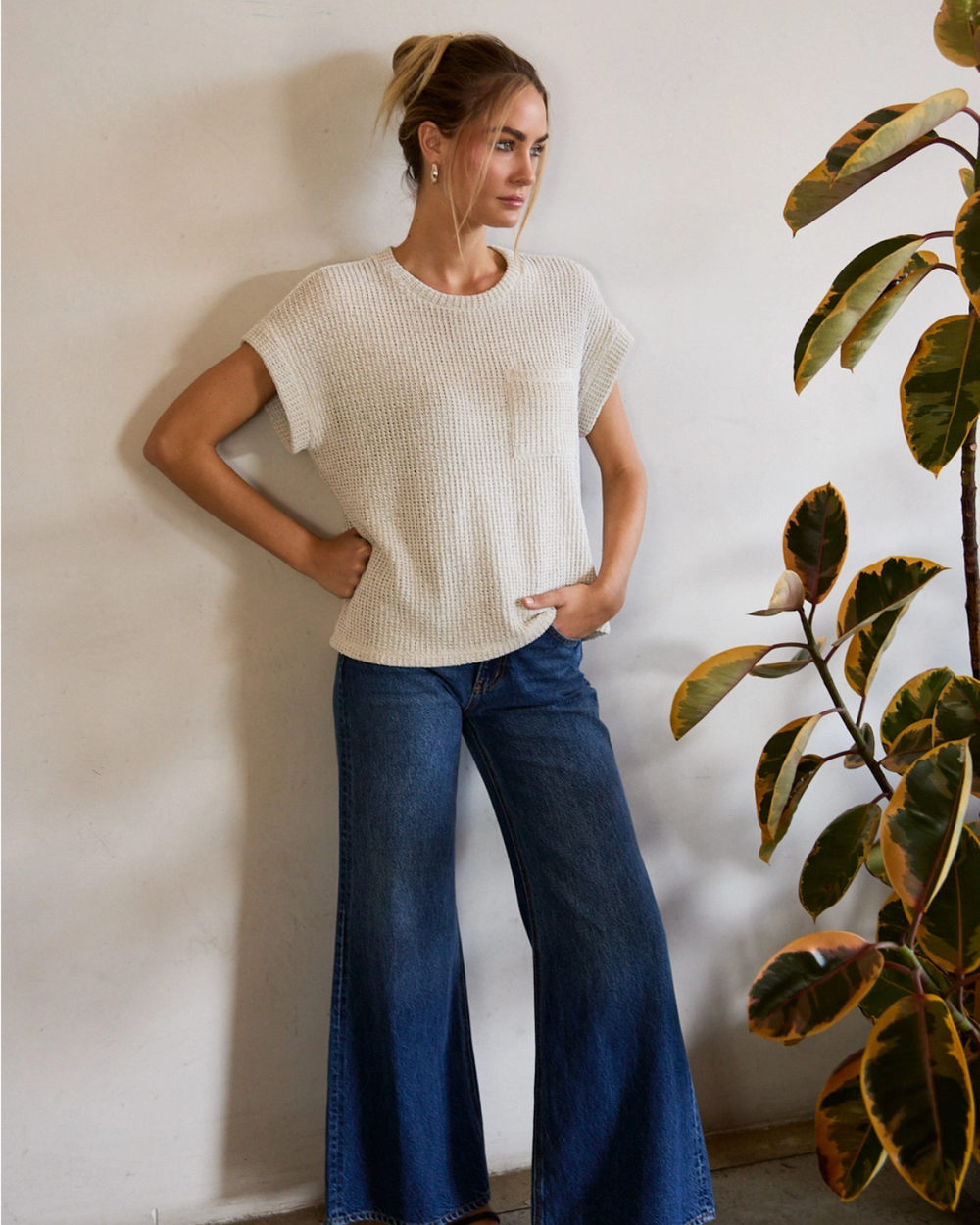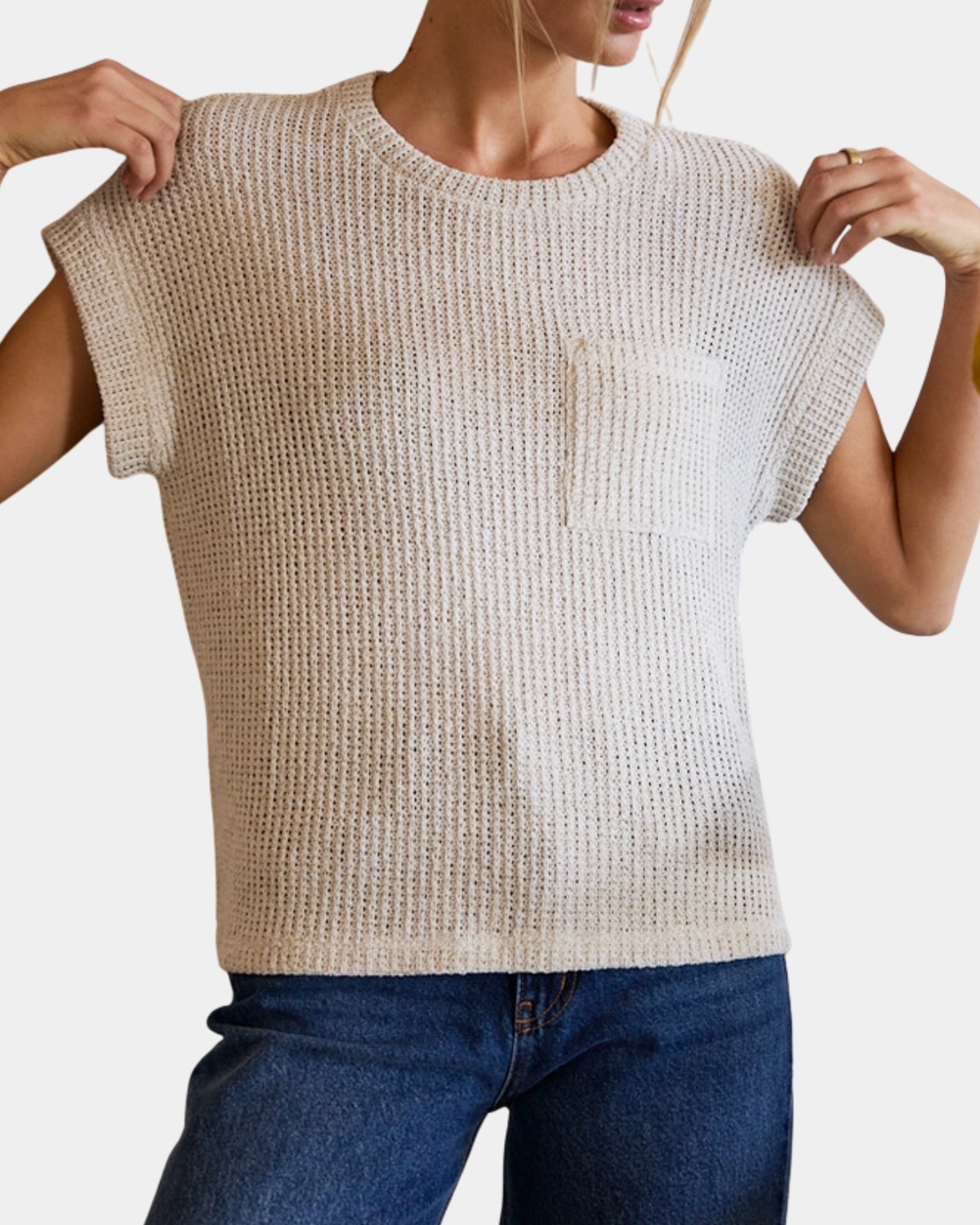 Simple and chic, this natural crew neck top is your new favorite. Rolled cuffs add a fun detail, a front pocket keeps things practical, and the relaxed fit means you'll reach for it again and again.