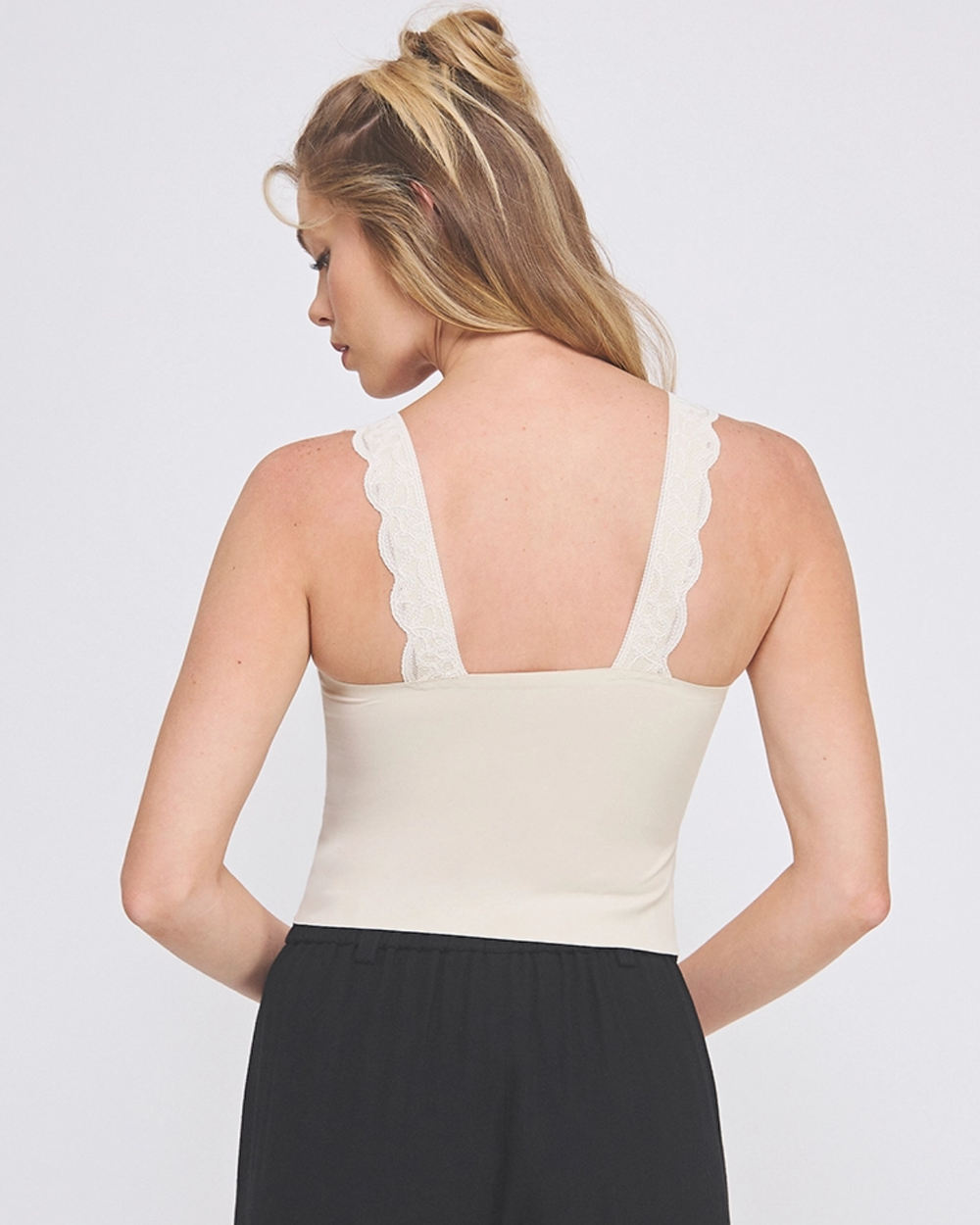 This pretty bralette combines expert craftsmanship with elegant design. Crafted from delicate lace with scalloped edges, this padded bralette tank provides subtle shaping and gentle support. Its refined construction ensures a comfortable fit, making it ideal for layering or standalone wear, bringing sophistication and functionality to your lingerie collection.
