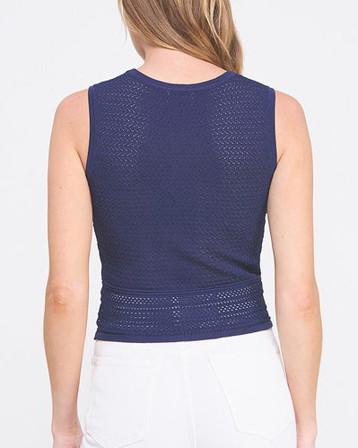 This soft, fine gauge tank features a mixed pointelle design and a fitted silhouette. The perfect wardrobe staple for wearing solo or for layering under cardigans or blazers.