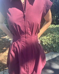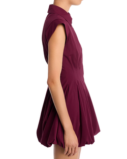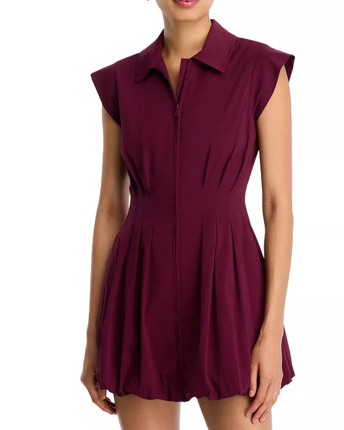 A front-zip closure and a fitted, corset-inspired waist adds to the edgy vibes of this minidress finished with a voluminous bubble hem.