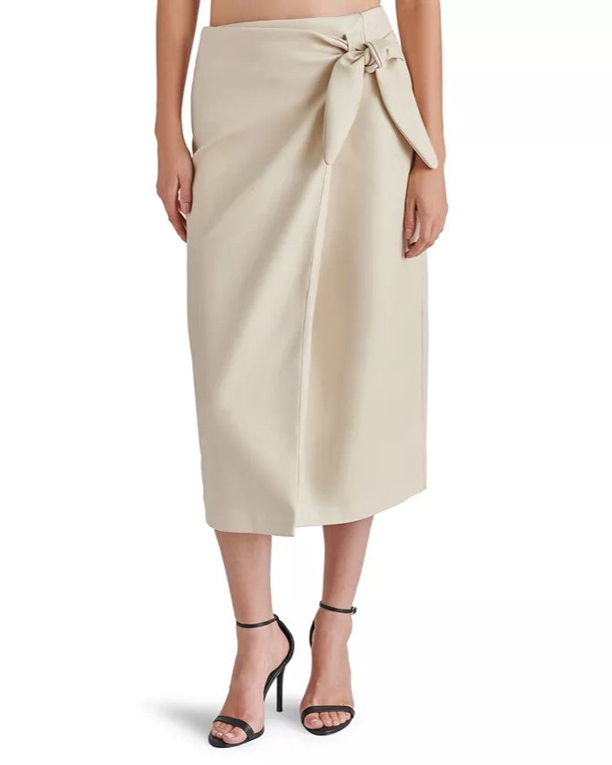 Fabulous faux leather upgrades this midi-length pencil skirt from Steve Madden, while a wrap front gives it dimension.