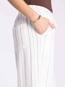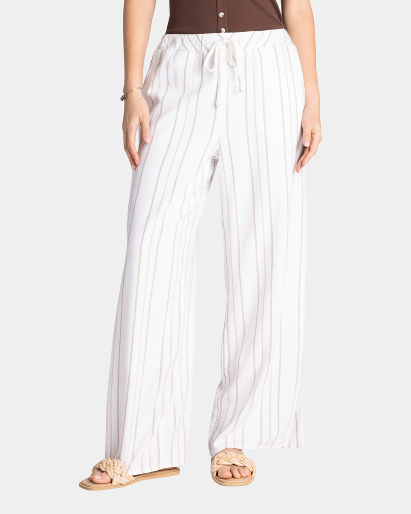 Complete the look with these breezy striped pants in ivory and taupe. Designed to pair perfectly with the matching Amorette button-up, this duo creates an effortless, coordinated vibe that's totally on-trend.