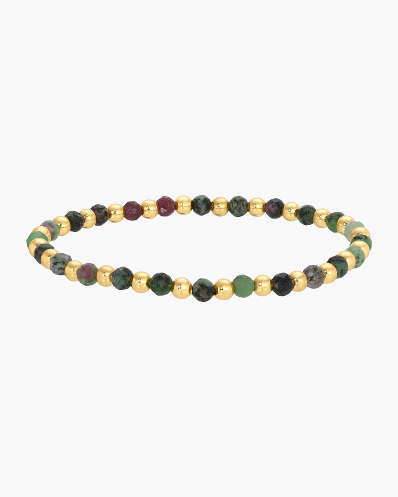 This playful bracelet combines 4mm beads with natural stones and gold accents for a stylish pop of color. The stretchy design ensures a comfy fit, perfect for everyday fun and flair!