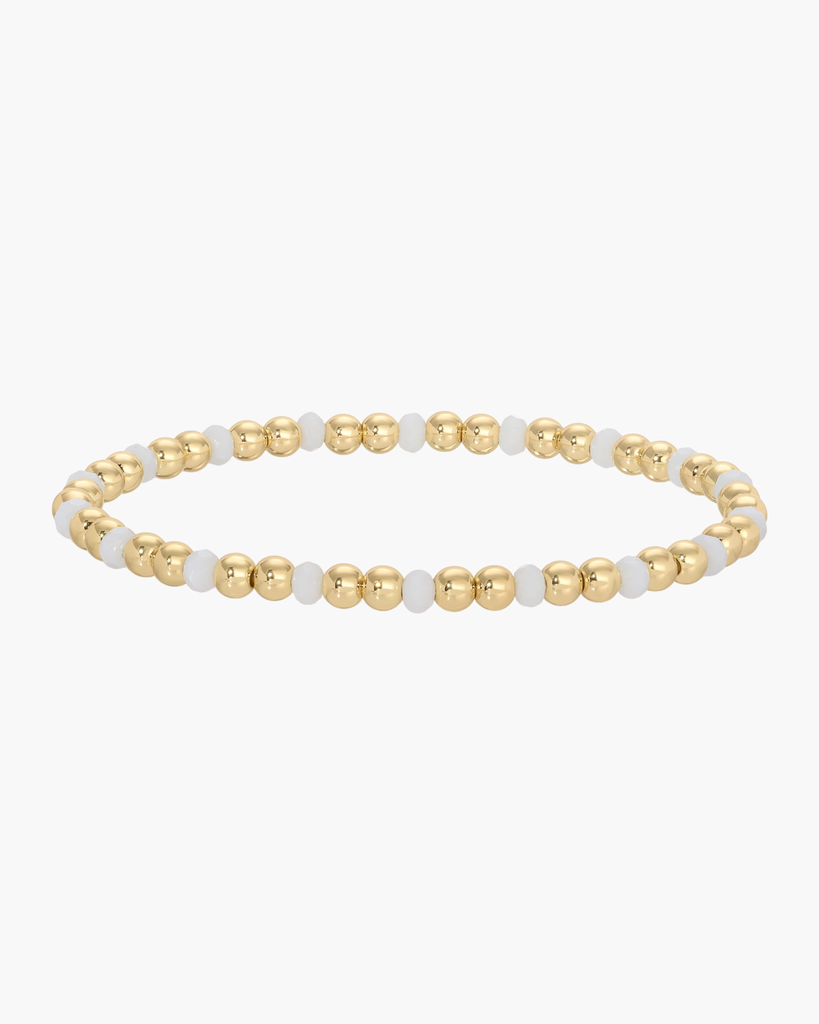 Mix, match, and stack these stretchy bracelets featuring shimmering gold beads and vibrant crystals for a personalized, playful style that's all you.
