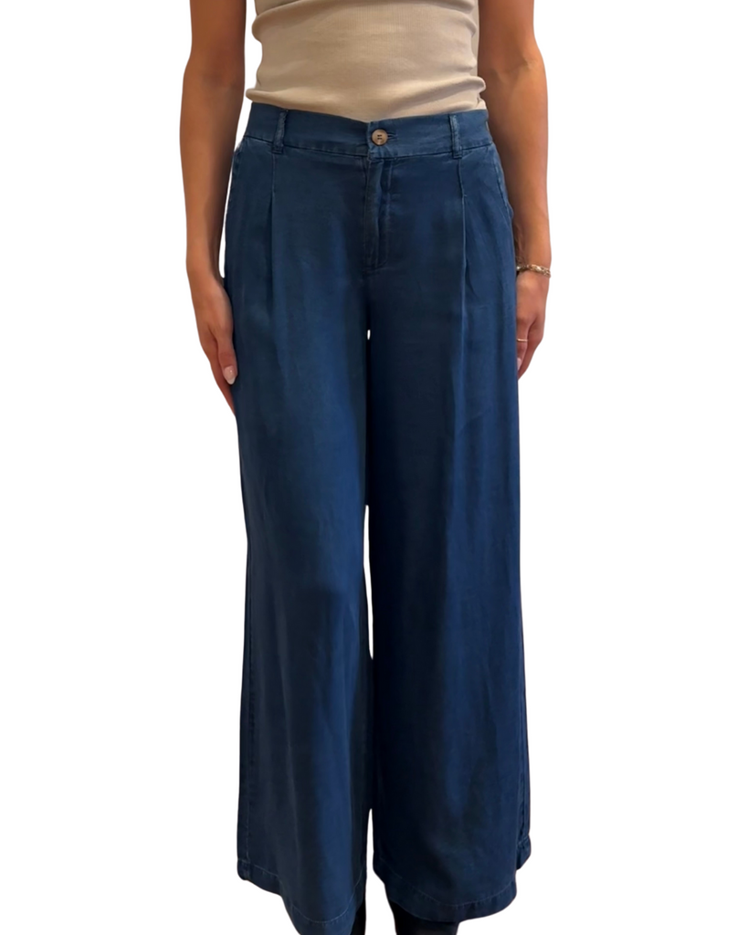 Crafted from dark chambray, these pintuck wide leg pants offer a sophisticated silhouette with precise pintuck detailing that enhances structure and movement. Designed for comfort and style, they provide a versatile foundation for both professional and casual ensembles.
