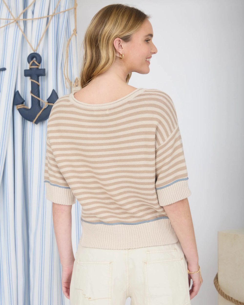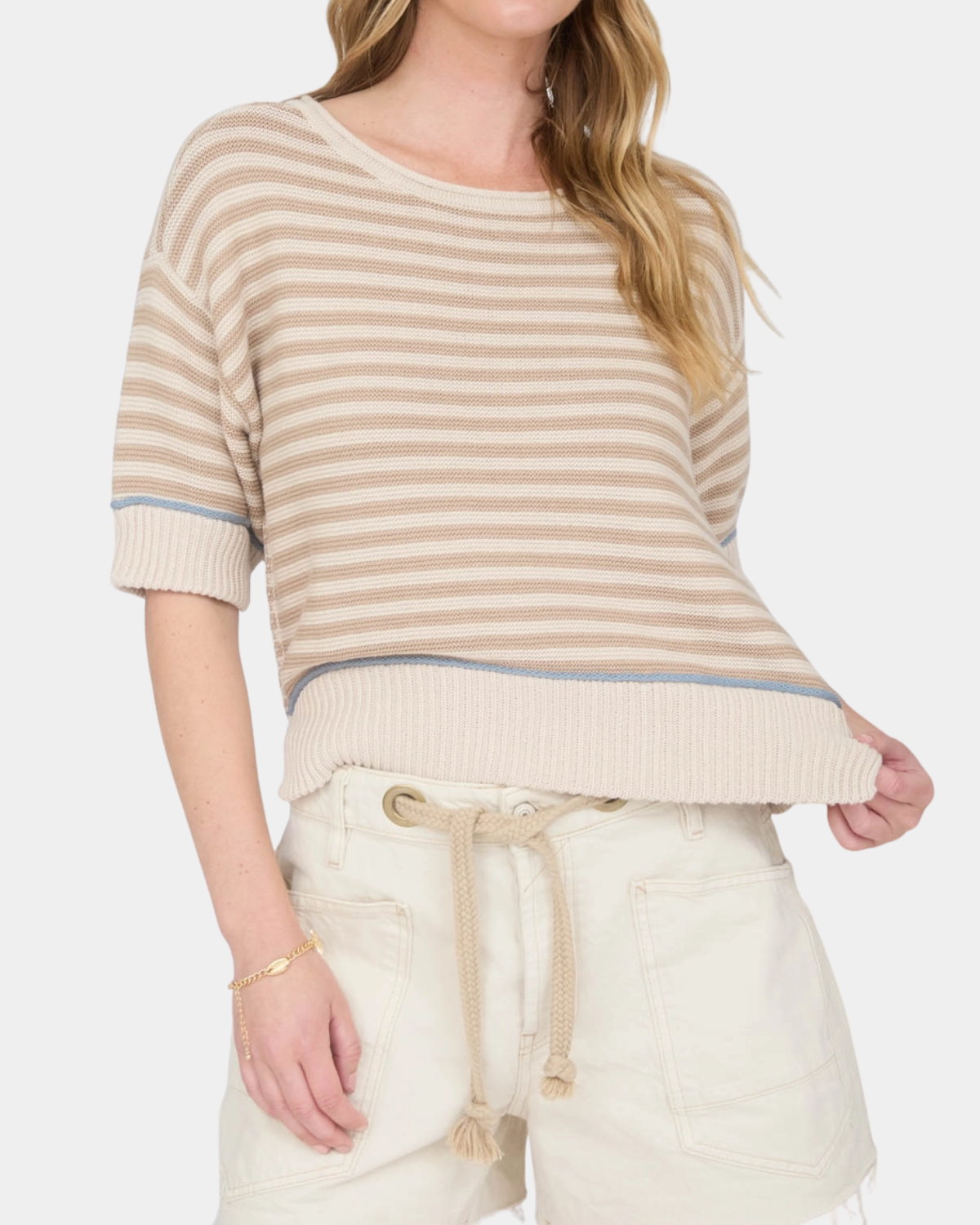 Meet your new go-to top that does casual sophistication like nobody's business. This striped sweater features bold contrast trim and edgy raw details that keep things interesting.