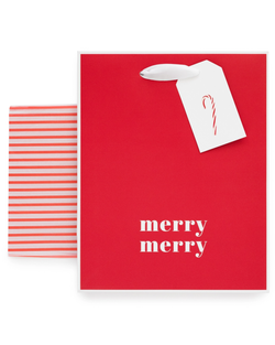 Elevate your gift-giving with these delightful Merry Merry bags, adorned with exclusive Sugar Paper designs. Complete with comfortable white grosgrain ribbon handles, they're perfect for presenting your thoughtful gifts in style.