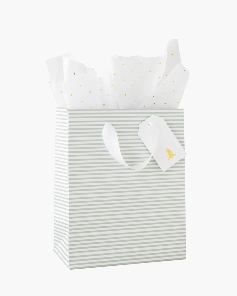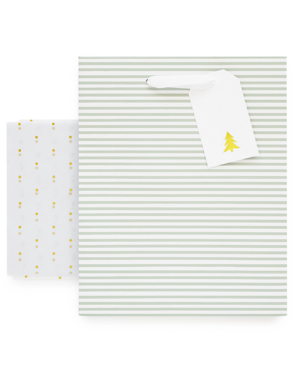 Make every gift unforgettable with these green stripe bags—featuring exclusive Sugar Paper designs and comfortable white grosgrain handles that make presenting a breeze.