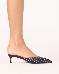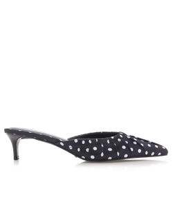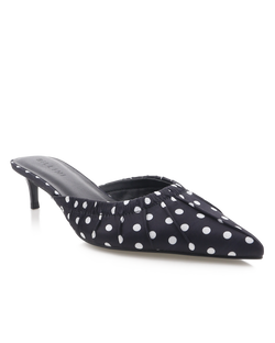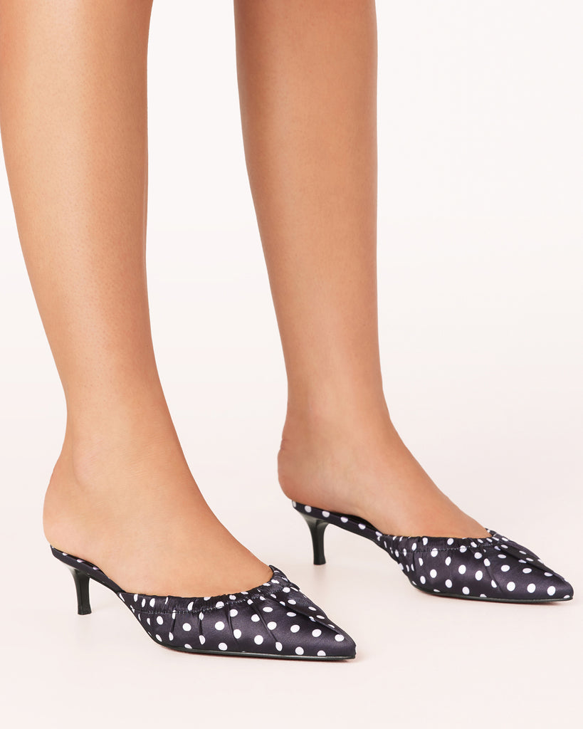 The adorable heels feature a polka dot print, ruching detail around the toe box and a walkable heel height. Easy to style and so much fun, we love these with everything from jeans to dresses to skirts.