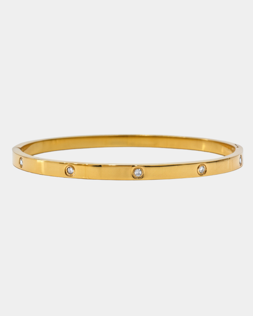 This bangle bracelets feature brilliant cubic zirconia accents that catch the light with every movement. A refined accessory that adds polish to any ensemble, whether worn individually or stacked for maximum impact.