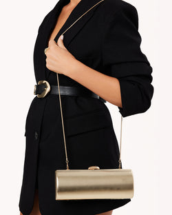 The Sierra Clutch Bag is a polished accessory, distinguished by its structured rounded rectangle silhouette and elegant metal clasp. Its removable chain allows it to be styled as either a clutch or a crossbody, offering adaptable sophistication.