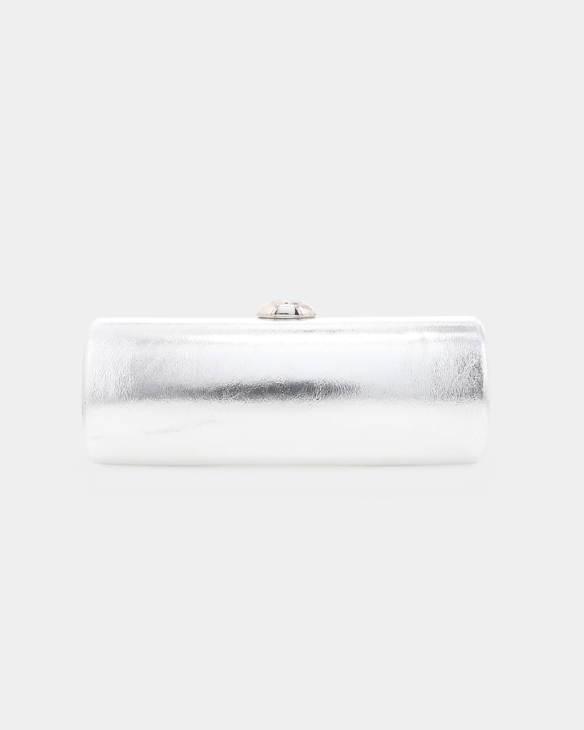 The Sierra Clutch Bag is a polished accessory, distinguished by its structured rounded rectangle silhouette and elegant metal clasp. Its removable chain allows it to be styled as either a clutch or a crossbody, offering adaptable sophistication.