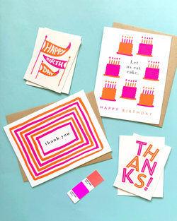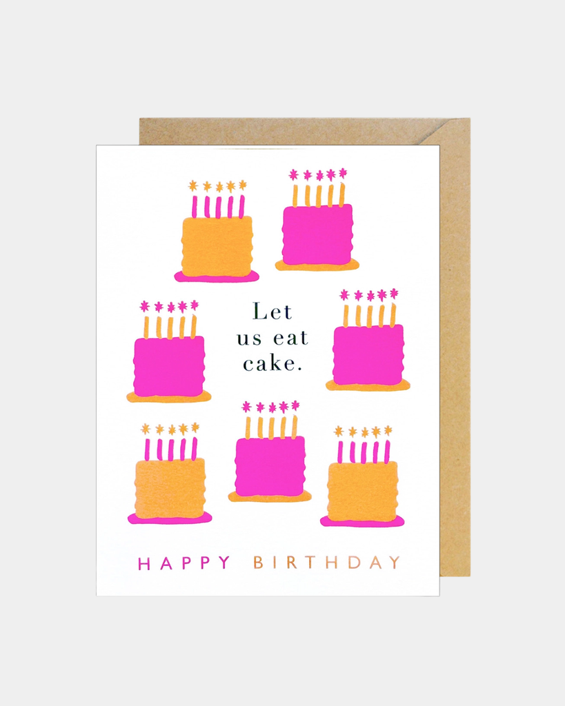 Celebrate with a burst of vibrant color thanks to neon Pantone inks that make this card truly pop. Printed on elegant vellum paper, the Bright Cakes Birthday Card adds a fun and festive touch to any birthday!
