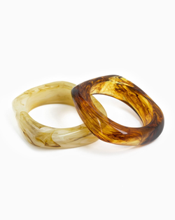 Make a fun autumn splash with these eye-catching bangles. Their marbled swirls in warm amber and earthy shades capture the spirit of falling leaves and cozy vibes, while the chunky shape adds a cool, trendy twist to your look.