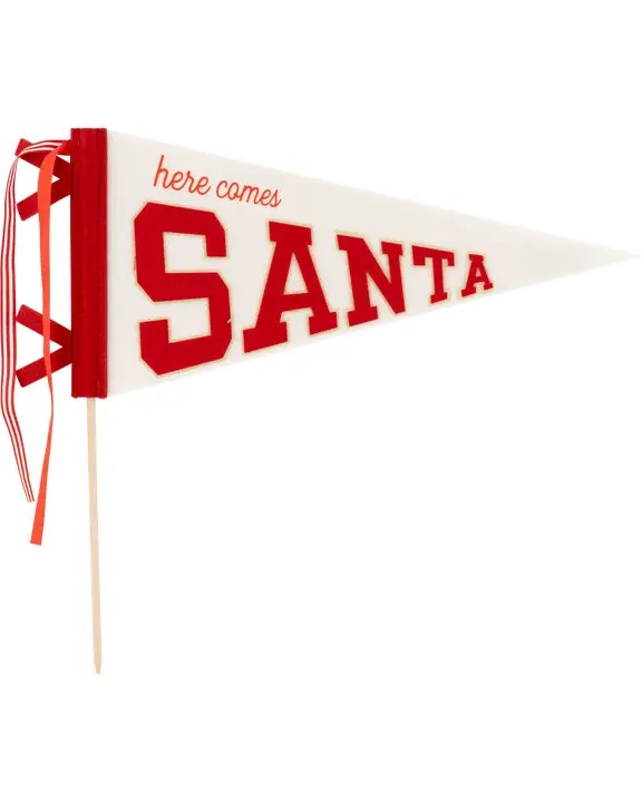 Deck the halls with this jolly Santa Felt Pennant Flag! Perfect for adding a touch of holiday cheer to any room or party. Hang it up and let Santa's magical spirit fill your space. Fa la la la la la la!