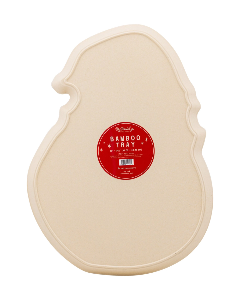 Add a fun festive touch to your celebrations with this durable Santa-shaped bamboo tray, ideal for serving goodies or displaying holiday decorations.