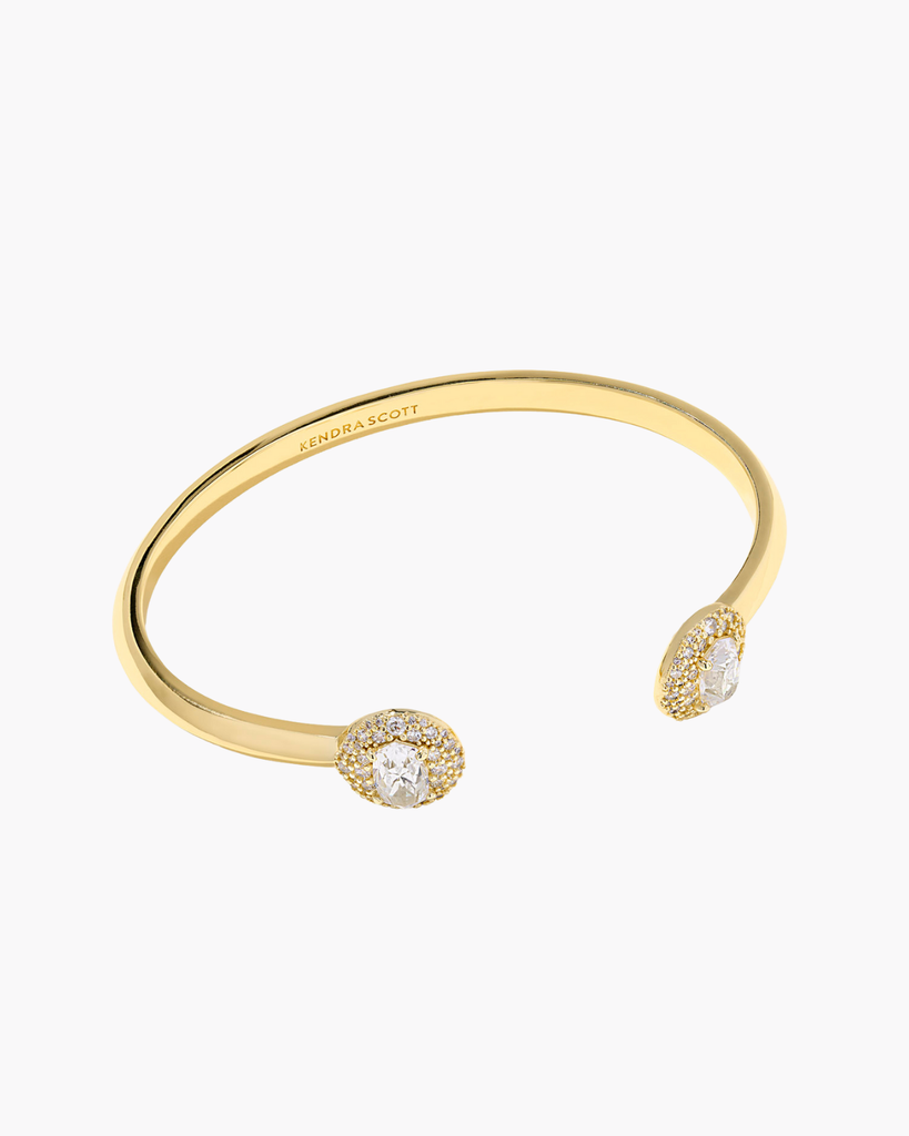 Elevate your bracelet collection with the Bella Silver Cuff Bracelet, showcasing a polished metal finish that catches the light beautifully. The striking endpieces feature custom-cut crystals in the popular Elisa shape, encircled by brilliant cubic zirconia for exceptional sparkle.
