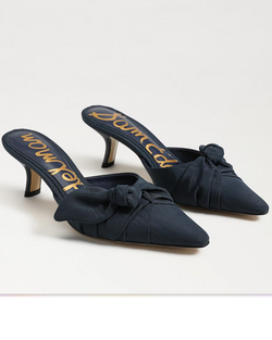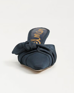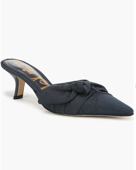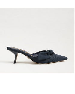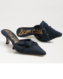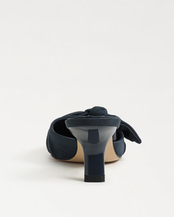 A gathered, asymmetric instep bow and snip toe create elegant dimension on a sleek mule set on a sculptural demi heel. Bold and stylish, the Bex mule brings a playful yet sophisticated touch to any outfit.