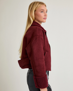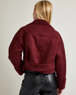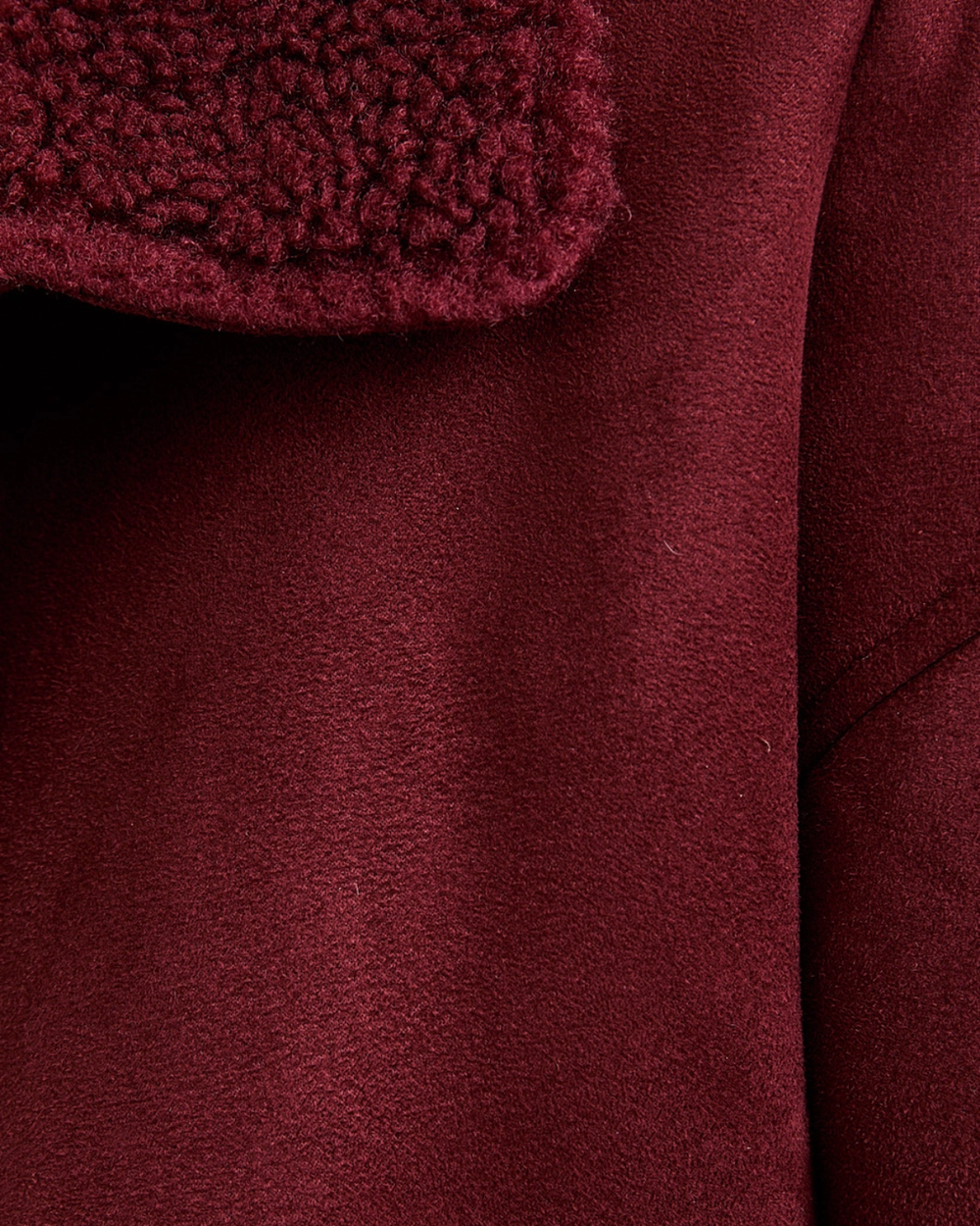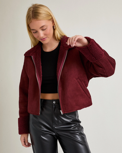 Elevate your outerwear game with this stunning burgundy suede jacket featuring a luxe fur contrast back detail. The rich wine tone pairs perfectly with the plush fur trim, creating an effortlessly chic silhouette.