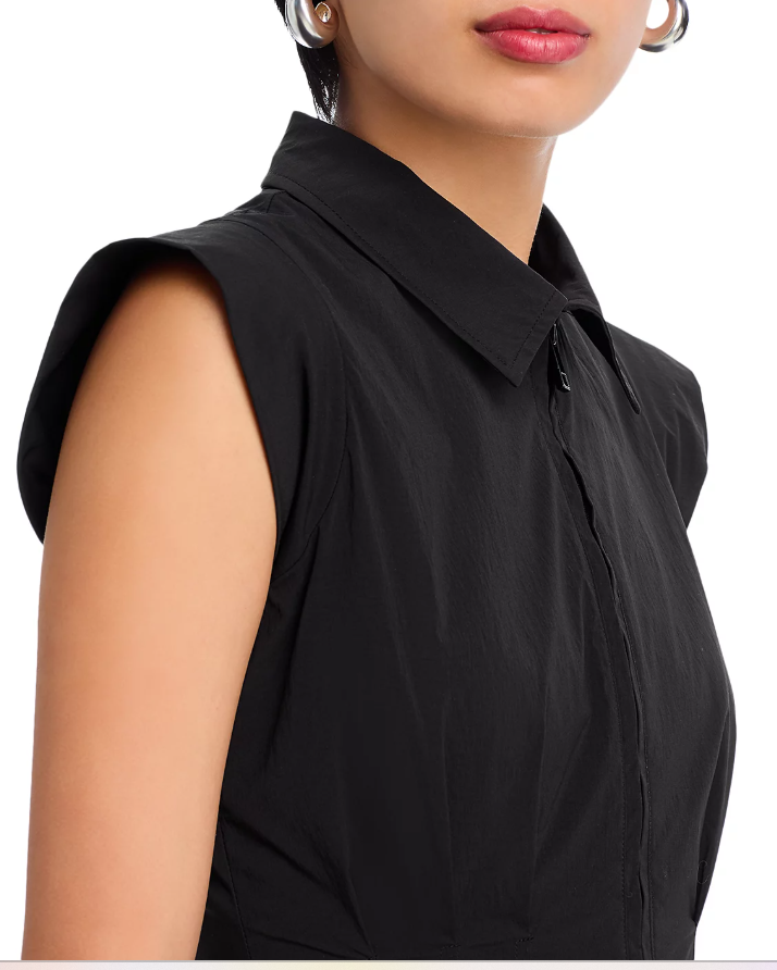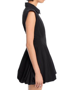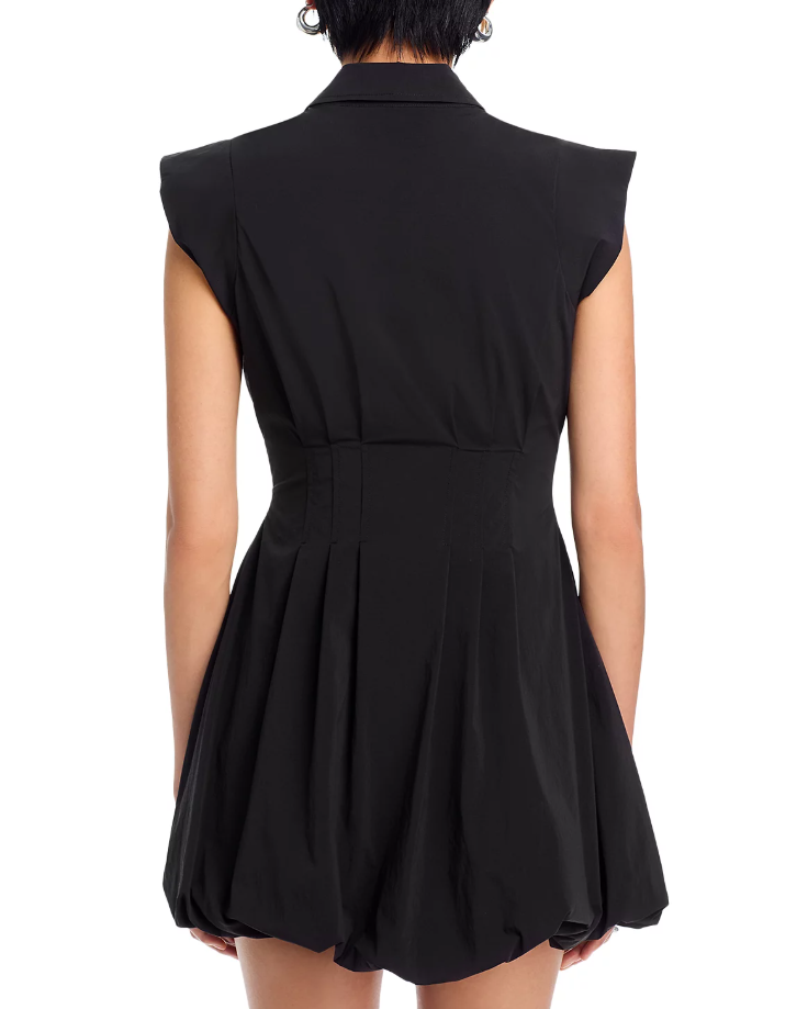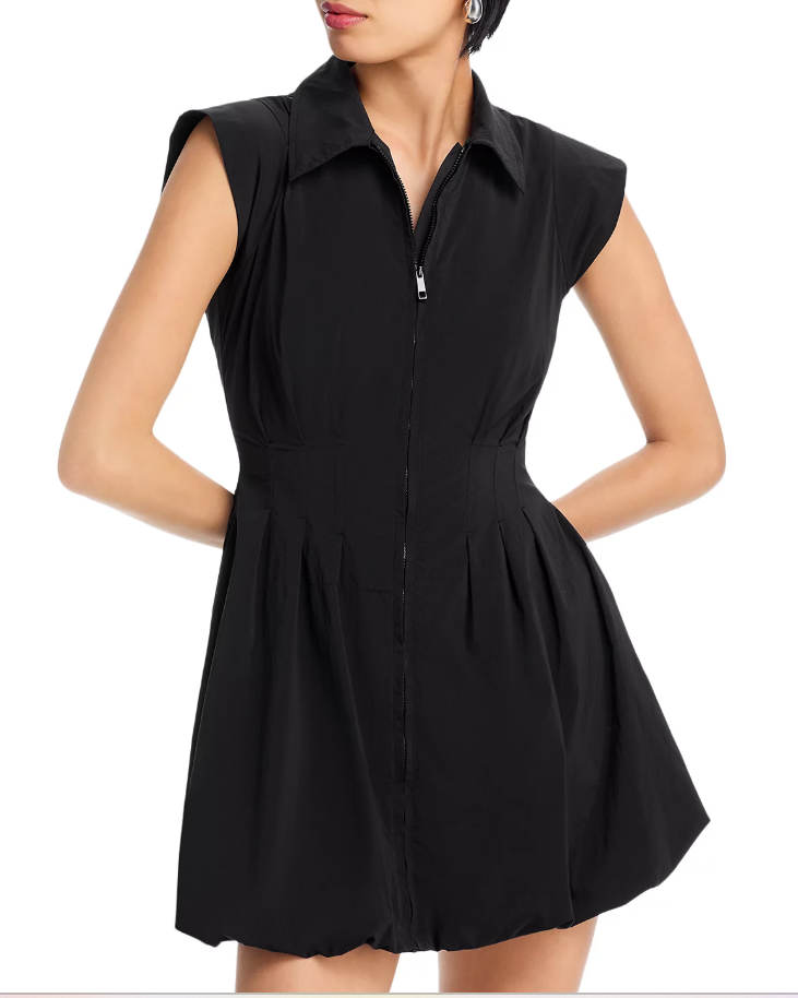 A front-zip closure and a fitted, corset-inspired waist adds to the edgy vibes of this minidress finished with a voluminous bubble hem.